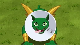 Perry then tosses it back, believing the shields to be playing a game of catch with him, with Batgirl believing him to be trying to ware down the shields. Barda however, notes that Perry was just playing, just as Shiva sharply says she was no Parademon's play-thing before activating the laser and destroying the man-hole cover. Perry then begins to act like a dog, scratching his ear and attempting to chase his tail, with Barda then realizing Perry had hurt his ear. Shiva then launches a net, catching Perry as he lunges forward. Barda then goes out to help Perry, just as Batgirl tries to warn her about Granny Goodness. Barda then explains that Granny wasn't there and that Perry had been hurt, with Granny having just left him behind.